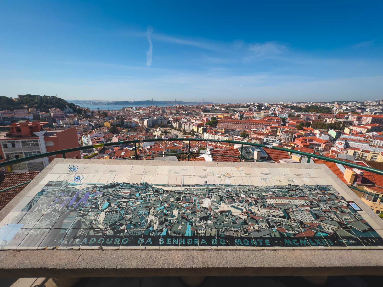 Yksi parhaimmista näkemyksistä Lissabonissa on Miradouro da Senhora do Monte. Tuk-Tuk-kiertueemme sisälsi tämän, ja oli syytä mennä näkymään kaupunkiin.